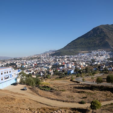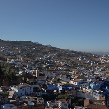 Après avoir quitté Rabat, nous arrivons à Chefchaouen. Située dans les montagnes, la ville est célèbre pour sa médina (partie ancienne de la ville entourée de remparts) composée de ruelles étroites et de bâtiments peints de différentes nuances de bleu. Je n'ai pas fait de photos dans la médina, trop occupé à m'y retrouver.