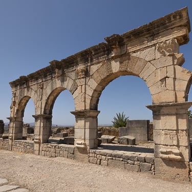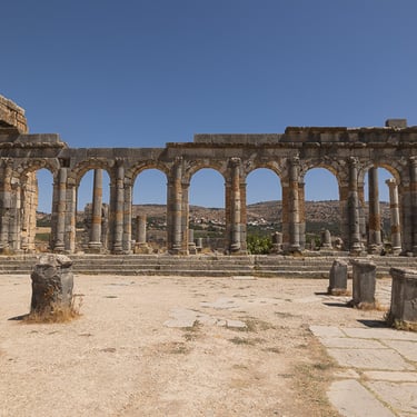 En route vers Fès, petit arrêt dans la ville sainte de Mouday Idriss Zerhoun pour visiter l'antique ville romaine de Volubilis, active du 2e au 17e siècle avant J.C.