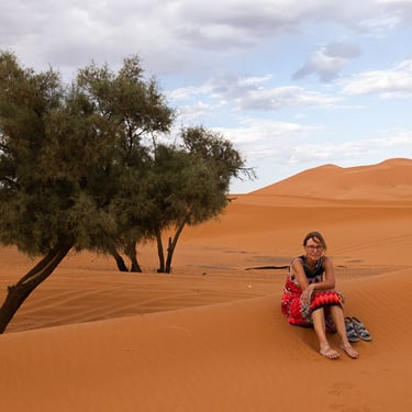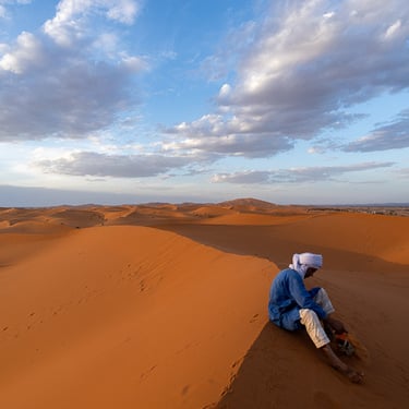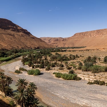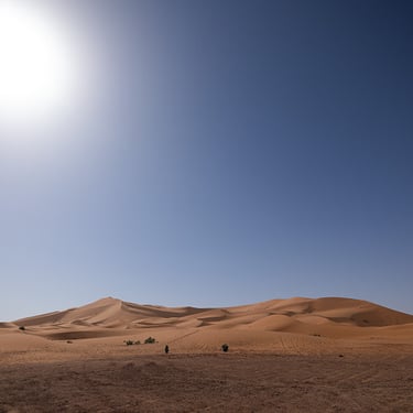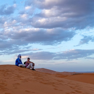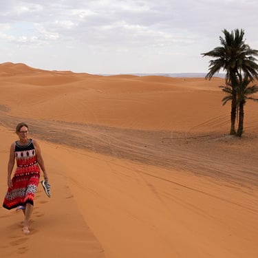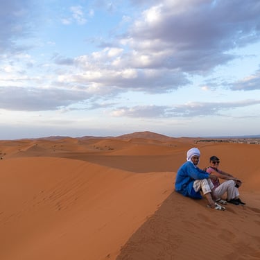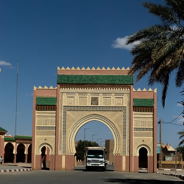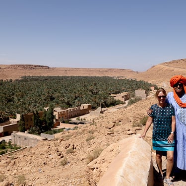 Toujours sur la route vers Merzouga, nous traversons la Vallée du Ziz et ses palmiers dattiers. Nous terminons la journée sur les dunes de sable à Merzouga, sous un soleil de plomb et une température à 38 degrés...OUF !!!