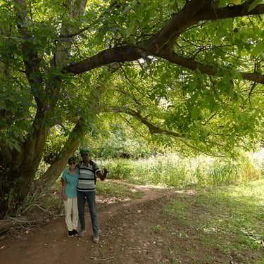 Pendant la marche, nous avons traversé plusieurs jardins et croisé des familles qui nous ont généreusement offert figues et noix...