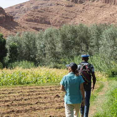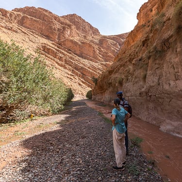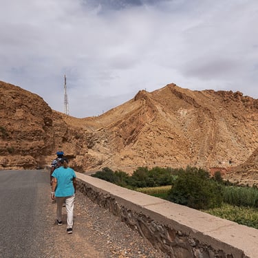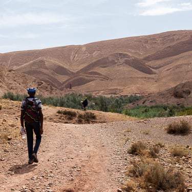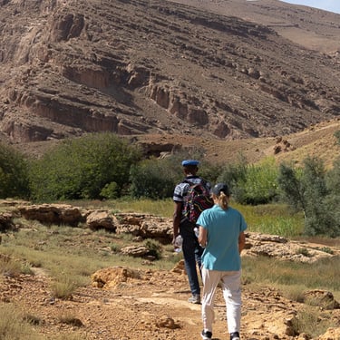 Journée randonnée aujourd'hui, nous sommes arrivés à Boutghrar pour une marche de 16 km avec notre guide Mohammed. Super sympathique et chaleureux, Mohammed nous a fait traverser des villages berbères et permis de voir de fabuleux paysages. La randonnée s'est terminée dans la Vallée des roses pour rejoindre notre riad.