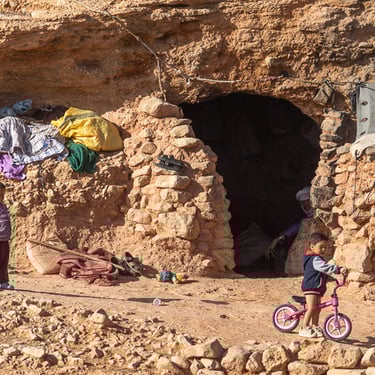 En cours de route, notre chauffeur décide de sortir des sentiers battus. Le 4x4 est très utile :). Nous avons pris une route très accidentée pour arriver devant des grottes où vivent des nomades berbères. Un bel avant-midi d'aventures.