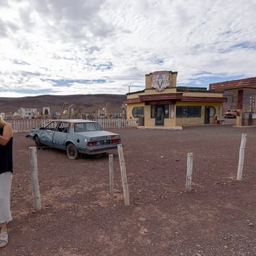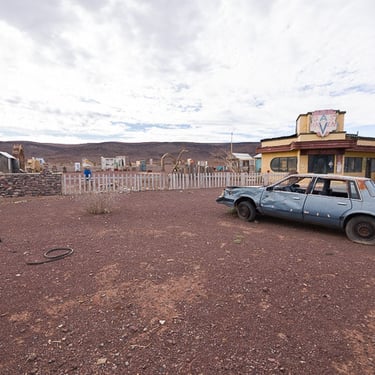 Entre Ouarzazate et Taroudant, nous avons fait un arrêt près d'un décor de cinéma. Celui-ci m'a fait rappelé le film "Bagdad café", mais il s'agit plutôt d'un film tourné en 2006, intitulé "The hills have eyes".