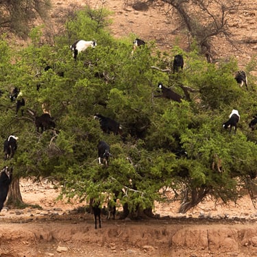 Quelques photos de chèvres perchées dans les arganiers. Eh oui ! Les chèvres ne se trouvent pas toutes dans les montagnes, mais on le retrouvent aussi dans les arganiers où elles semblent se régaler. :)
