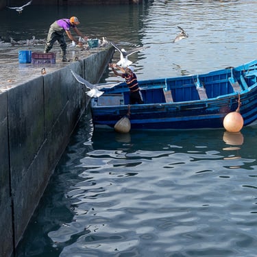 Deux endroits où j'aime particulièrement faire de la photo ! Les souks et les ports. Essaouira ne laisse pas sa place à cet égard. Les "felouques", bateaux traditionnels, sont colorés à souhait et la vie y est grouillante. Ça clique !!!! :)